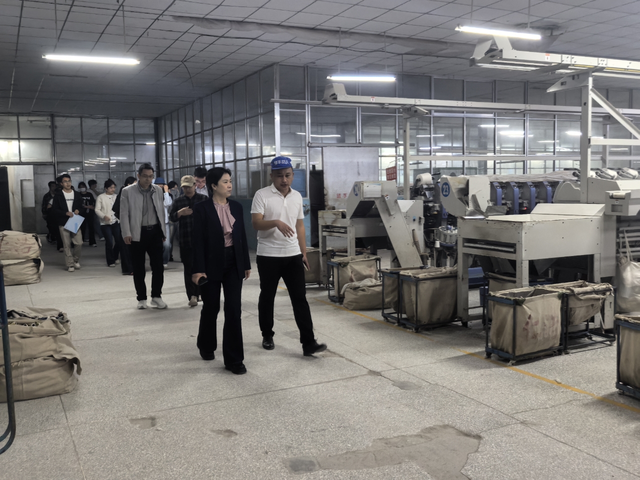 团队先后深入山东金嘉亿新材料科技有限公司和华芳夏津纺织有限公司,实地走访生产车间、研发中心及实验室,系统调研企业在纺织新材料研发、生产工艺优化、数字化转型等领域的技术需求,并与企业负责人围绕行业发展趋势、技术瓶颈突破、人才需求等议题展开交流。针对企业提出的技术难题,党支部充分发挥专业优势,结合学院科研平台资源,提出系列解决方案,并达成多项合作意向。