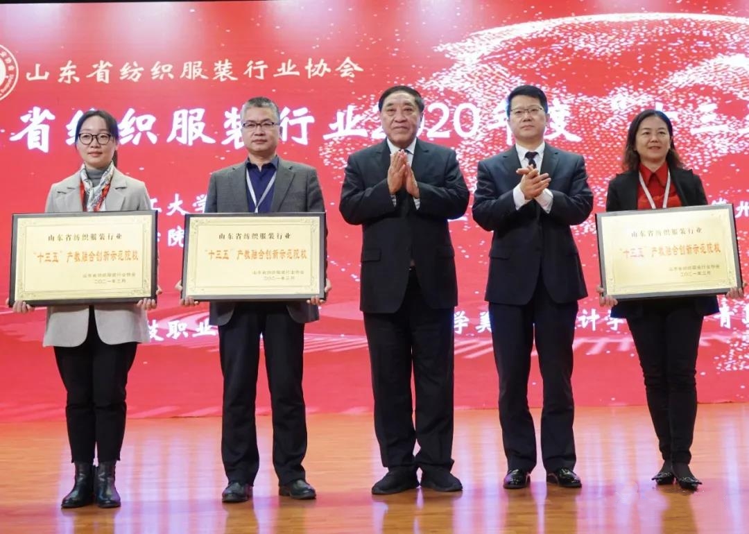 大会对荣获山东省纺织服装行业2020年度新冠战疫特别贡献奖、优秀青年企业家奖、优秀管理创新案例奖、产业集群转型升级优秀案例奖、企业文化建设先进单位奖、产学研优秀创新单位奖、最具潜力自主品牌奖、模式创新先进单位奖、“十三五”产教融合创新示范院校奖、五星级会员单位奖、先进基层组织奖的单位和个人颁奖,德州学院亚洲精品国产荣获山东省纺织服装行业“十三五”产教融合创新示范院校奖。