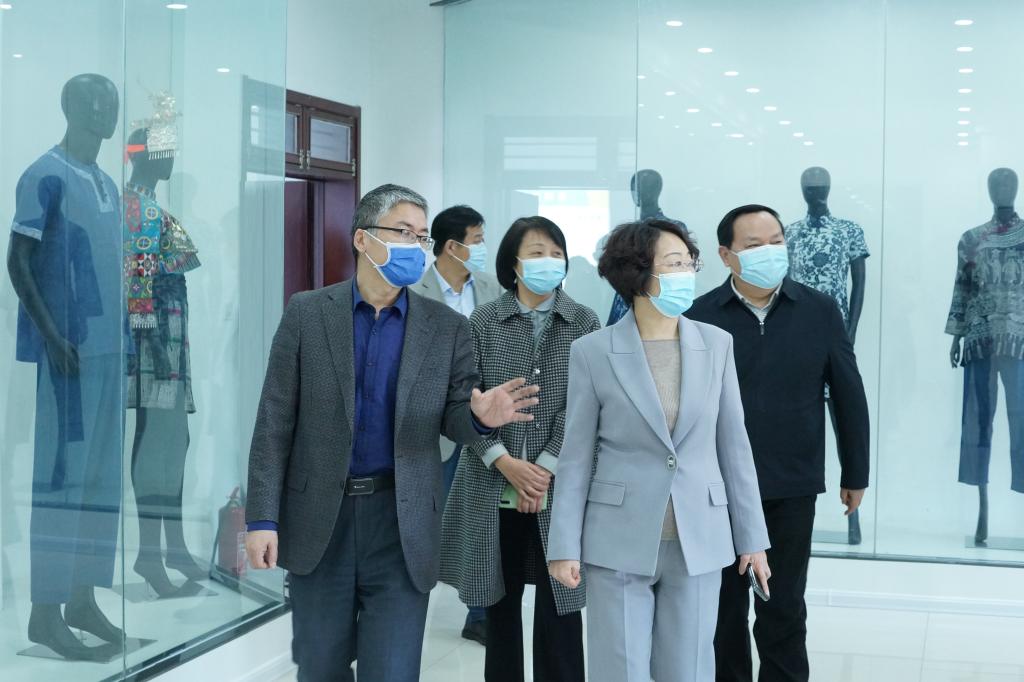 3月2日下午,德州市委常委、宣传部部长,市委教育工委书记祁小青、市委教育工委常务副书记、市教体局党组书记、局长隋力等一行4人来我院国家纺织面料馆德州分馆参观调研,学校党委书记车滨、校长赵胜村、我院领导班子陪同调研。