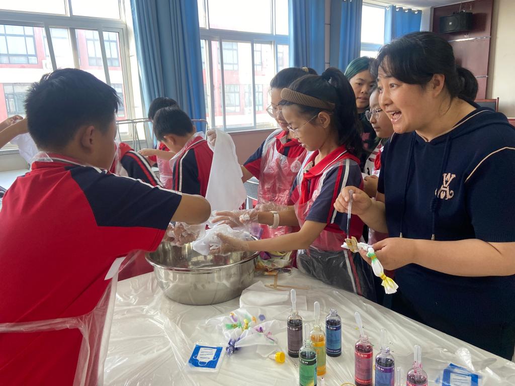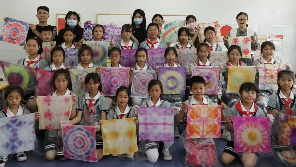 课程主要围绕扎染艺术赏析和中国扎染非物质文化遗产传承的价值和意义展开,以此提升学生的审美水平。课上,老师们带领学生动手制作扎染作品,体验扎染的工艺过程,鼓励学生要充分发挥想象力和创新力,大胆尝试,勇于实践,同时让学生们感受到中国传统手工扎染的艺术魅力。