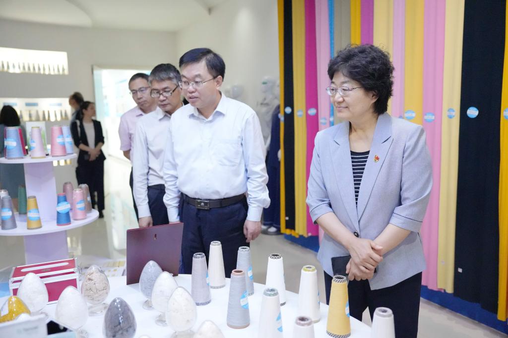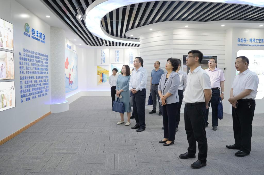 调研组一行在恒丰集团理事长孙传芳、党委书记王思社、执行理事长付刚和相关部门负责人陪同下,实地参观了山东省新型纱线及面料制造业创新中心和恒丰集团展厅,并在集团会议室进行了深入的座谈交流。