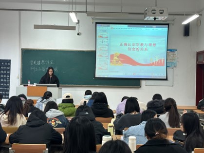 在嘹亮的中国共产主义青年团团歌的歌声中,本次活动正式拉开帷幕,各支部团支书带领同学们学习了宗教基础知识,了解了宗教的概念、内涵和作用,又以习近平总书记关于民族宗教工作的重要论述,结合《宗教事务条例》等宗教政策法规,向同学们详细讲解了中国特色社会主义民族宗教理论的相关知识,引导同学们理性看待宗教信仰,坚持马克思主义无神论。随后同学们积极发表感悟,不少同学表示自己在今后的学习工作中,要积极学习科学文化知识,树立中华民族共同体意识,坚定马克思主义信仰,为实现中华民族伟大复兴贡献青春力量。