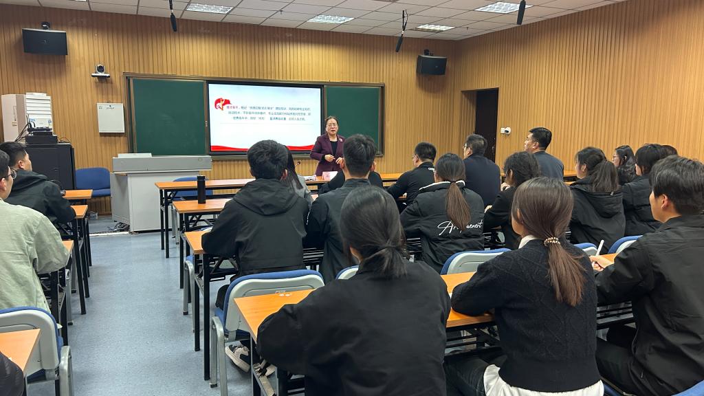 徐静从理论与实践相结合的角度,围绕党的二十届三中全会精神提出的“七个聚焦”、“四个迫切需要”、“六个坚持”,对党的二十届三中全会精神作了系统宣讲和深入阐释。她结合学校以及学院发展、学生成长实际,运用举实例、摆数据等方式,展现了中国式现代化进程的辉煌成就,激发学生的自豪感和使命感。课上,她对青年学生提出三点要求:一是认真“学思践悟”党的二十届三中全会精神,坚定理想信念,厚植家国情怀,坚持用党的创新理论武装头脑,将其内化于心、外化于行;二是在实践中增长才干,铭记“崇德启智,励志博学”德院校训,刻苦钻研专业知识、前沿技术,不断提升创新意识、专业实践能力;三是弘扬和传承科学家精神,着眼国家需要,提高创新能力,将所学知识转化为实际行动,坚定报效祖国和人民的信念和决心,为实现中华民族伟大复兴贡献青春力量;四是强化规矩意识,无规矩不成方圆,要知规矩明底线。