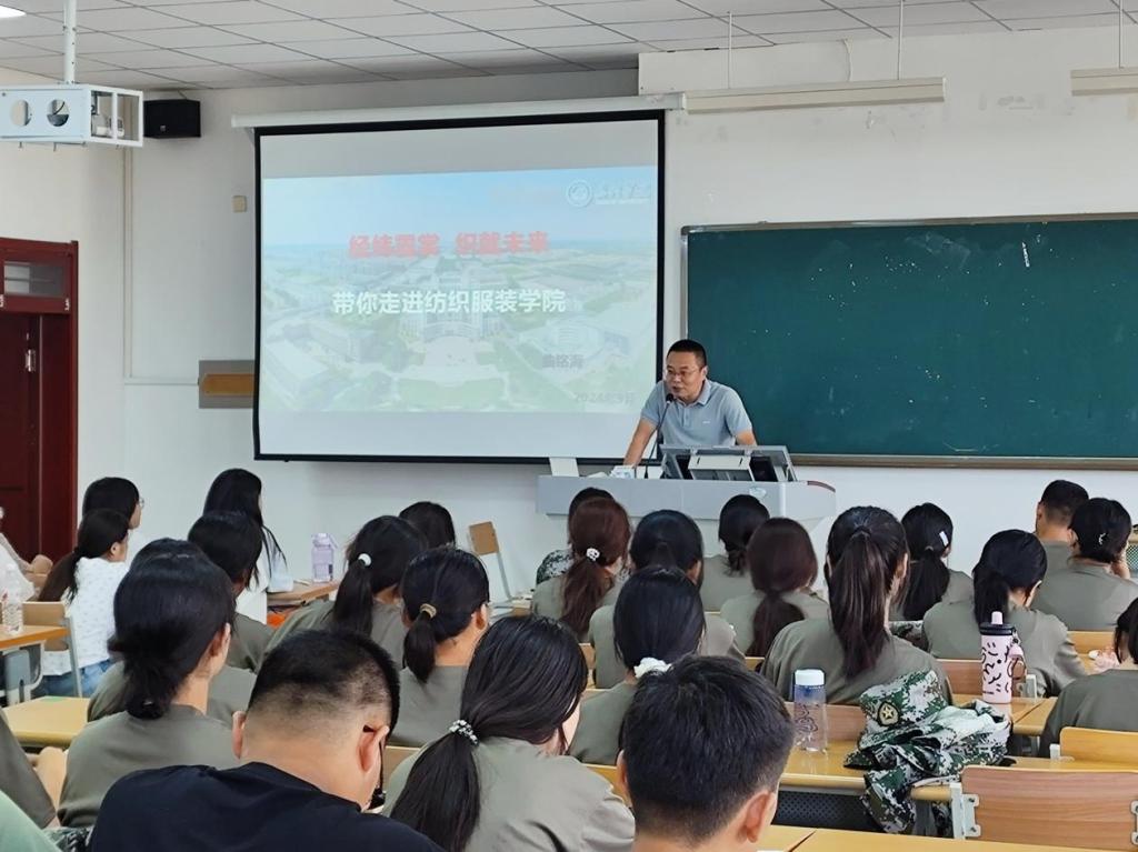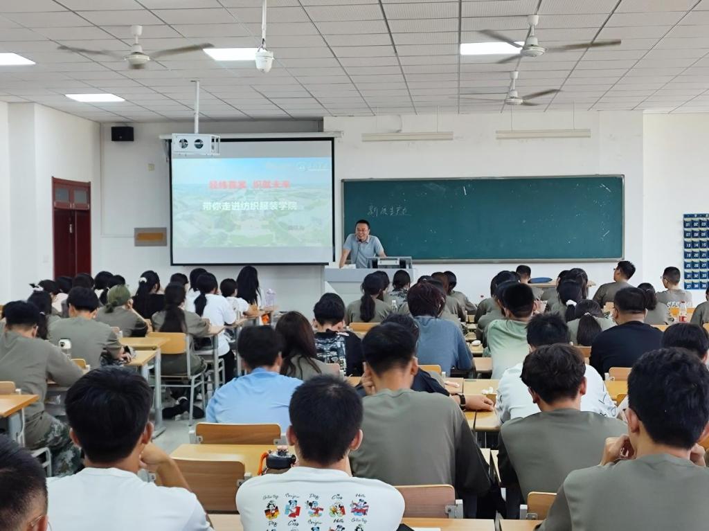 会上,学院院长以《经纬霓裳 织就未来》为题,从学院的历史沿革谈起,介绍了学院的教学理念、专业设置、师资力量、校企合作和硬件设施等情况,并从思想引领、专业设置、培养特色、专业认知、职业生涯规划等方面进行授课,他强调,党的二十大中明确了新时代新征程党和国家事业发展的目标任务,广大青年要坚定不移听党话、跟党走,怀抱梦想又脚踏实地,将个人理想和国家富强、社会发展相结合,立好纺服人的志、守好纺服人的心、做好纺服人的贡献。