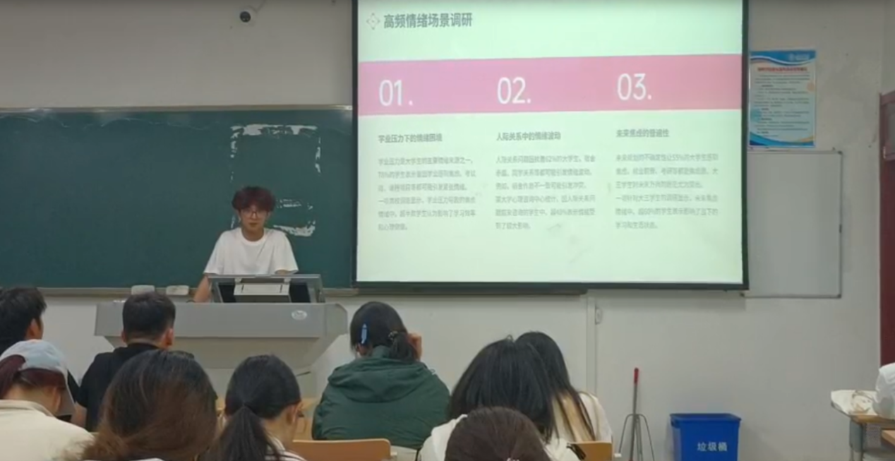 活动以班级为单位,借助多元化心理教育形式,引导同学们正确认识情绪,掌握科学心理调适方法。有的班级通过制作PPT进行知识讲解,系统阐述情绪管理的重要性和方法;有的班级则设计了形式多样的心理互动游戏。例如,在“请与我击掌”游戏中,同学们两两一组,通过快速击掌、随机变换节奏等任务,在轻松愉悦的互动中有效缓解压力、增强心理韧性,在欢声笑语中感受积极的情绪力量。同学们纷纷表示,此次心理主题班会收获颇丰,不仅对自身情绪有了更清晰的认知,还学会了许多实用的情绪调节技巧,为今后从容应对学业压力和生活挑战奠定了心理基础。