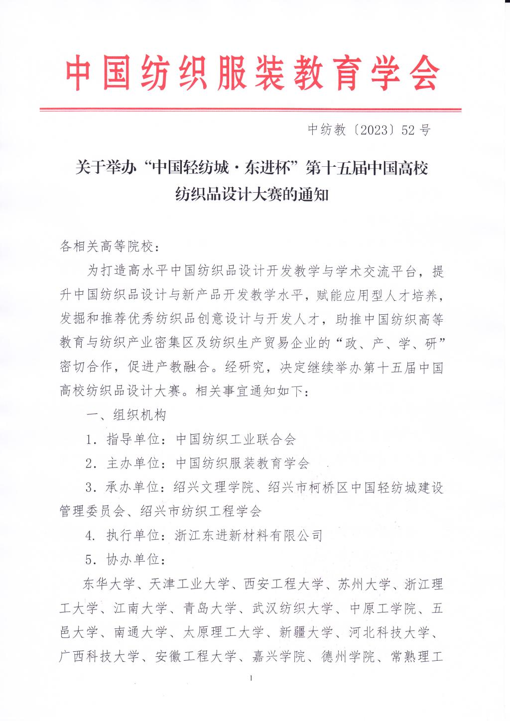 关于举办“中国轻纺城·东进杯”第十五届中国高校纺织品设计大赛的通知