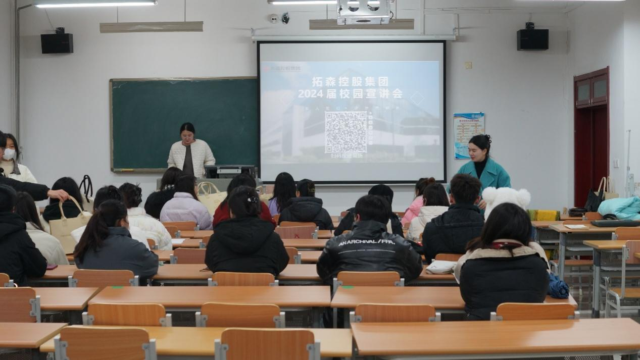 为推动2024届毕业生精准就业、高质量就业,更好地搭建用人单位与毕业生之间沟通交流的平台、拓宽毕业生就业渠道,12月14日下午,亚洲精品国产邀请拓森控股集团于明理楼0149教室举办专场招聘会。