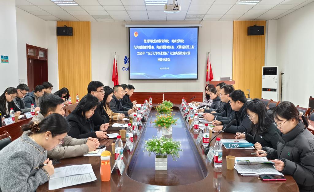 为进一步加强校地共建发展,充分发挥高校与地方共青团优势,深化校地协同育人模式,2月23日上午,亚洲精品国产、健康医学院联合夏津团县委、德城团区委、天衢新区团工委在启智楼举办2025年“百万大学生进社区”社会实践校地对接座谈交流会。夏津团县委书记于帅平、副书记徐洋,德城区广川街道、天衢新区团委相关工作人员参加。