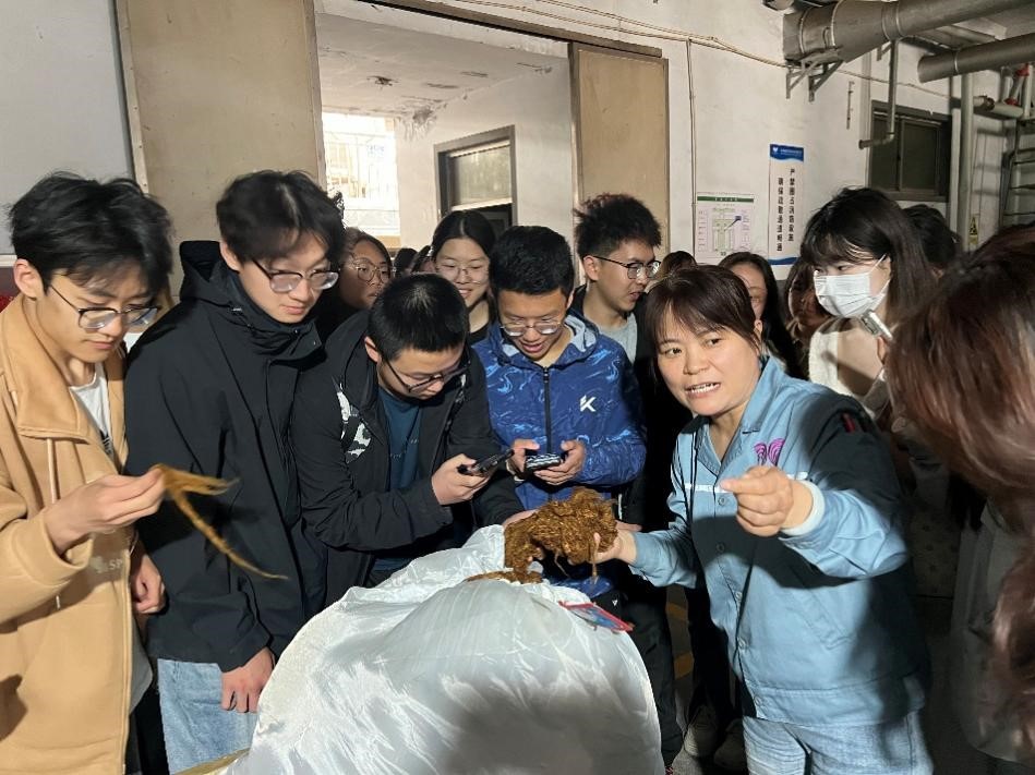 认知实习期间,我院师生深入企业生产车间,实地观摩了羊绒制品的生产流程和技术应用,详细了解行业前沿动态和企业发展需求。学生们在企业技术专家的讲解下,学习了羊绒制品的梳理、染色、编织等工艺流程,近距离感受了现代化生产工艺的魅力。