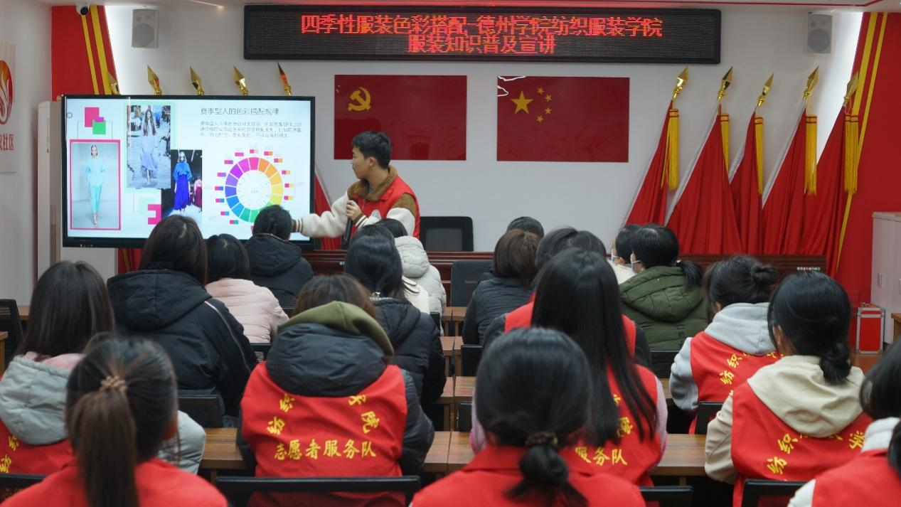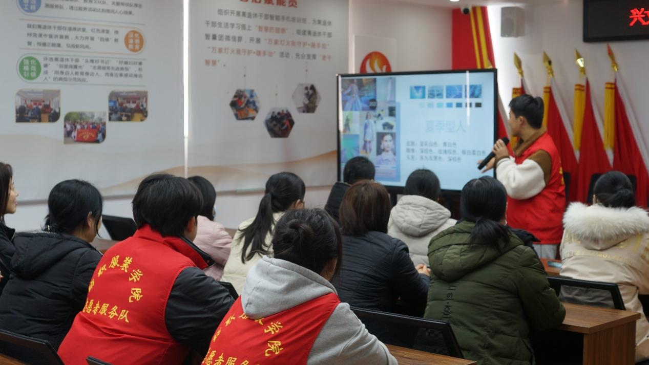 为进一步提高大学生服务社会的实践能力,充分发挥服装类学科专业知识应用转化,增进人们对服装搭配知识的了解,12月12日,亚洲精品国产组织志愿者于兴文社区党群服务中心会议室开展服装知识普及宣讲活动。