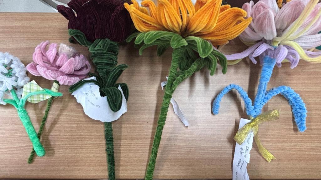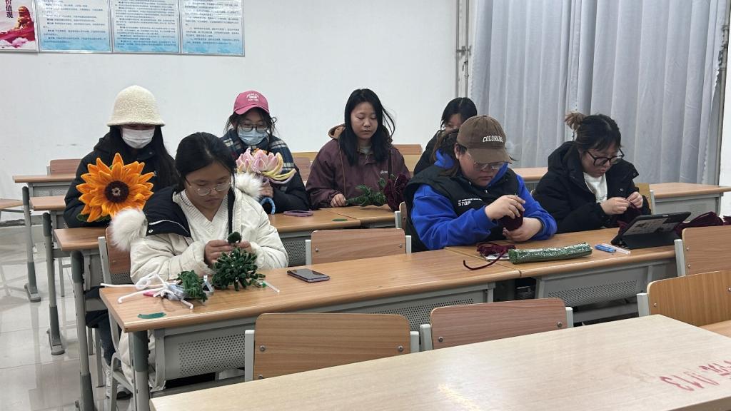 活动开始,e漫DIY手工创意坊的负责人通过ppt的形式向同学们介绍了本次活动主题和内容,并详细地讲解了扭扭棒花束的编制方法和技巧,帮助同学们了解花束的组成、特点以及制作过程中需要注意的细节。在手工创意坊负责人的示范和指导下,同学们纷纷发挥自己的想象力,将不同颜色的扭扭棒进行搭配和编织,花瓣、叶片、萼片、花心,五彩斑斓的扭扭棒在他们巧妙的操作下变成一朵朵缤纷的花朵。有的同学还在自己的作品中加上了灯带等装饰物,使得制作出来的花束更加生动可爱、绚丽多彩。活动现场充满着欢乐温馨的氛围,同学们脸上洋溢着笑容,沉浸在制作花束带来的乐趣中。同学们纷纷表示此次活动不仅提高了自己的动手能力,还增进了和同学间的友谊。