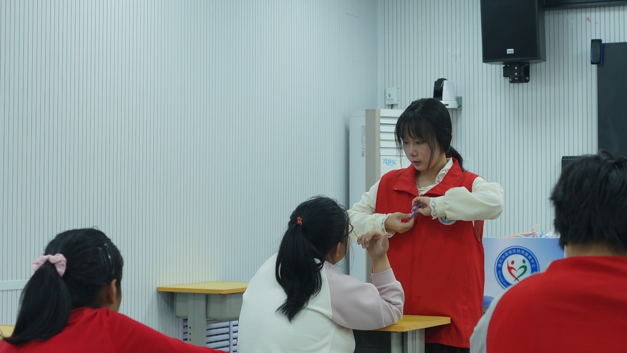 特教学校的老师和孩子们对志愿者的到来表示热烈的欢迎,在特教老师的带领下,志愿者们走进孩子们的教室中。活动开始,志愿者们将材料和工具分发给大家,并分步骤细致耐心的讲解了扭扭棒、胶带等材料的使用方法,通过现场示范的方式有条不紊的一步步引导同学们完成扭扭棒的手工制作。活动中孩子们天真灿烂的笑容感染着在场的每一个志愿者,在一次次互动中拉近了志愿者与孩子们的距离,增进了相互之间的友谊。交流环节,志愿者们表达了自己感动于孩子们的热情与努力,敬佩于特教老师们的博爱与奉献,纷纷表示将身体力行的呼吁更多人关爱特殊教育学生,为社会奉献自己的力量。
