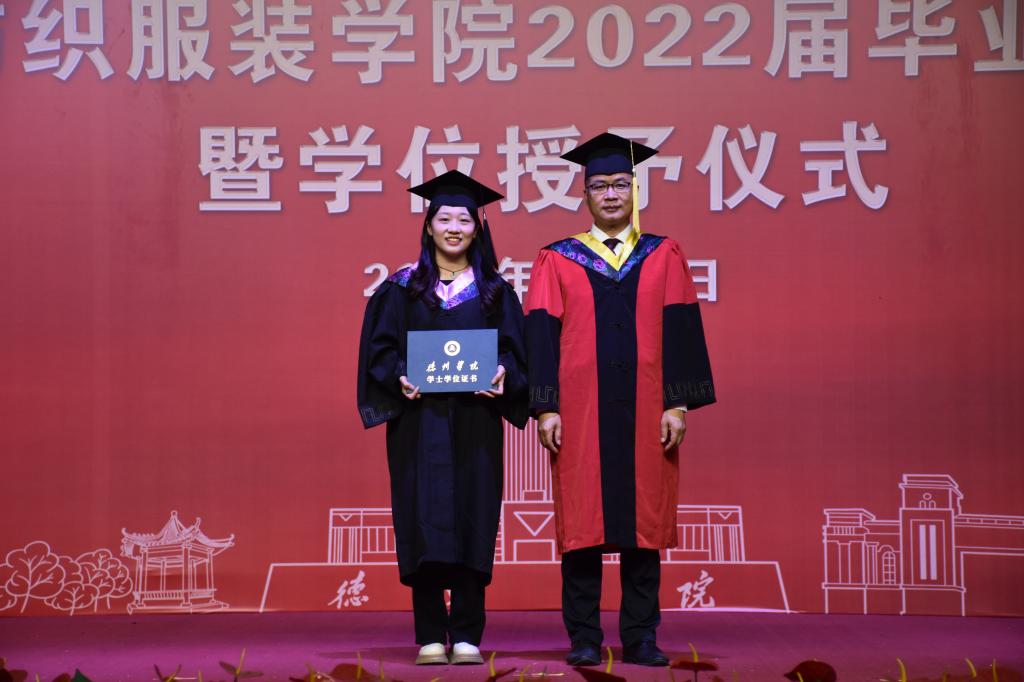 院长马洪才代表学院向全体毕业生表示祝贺。他满怀深情地和大家一起回忆了毕业生们在校期间的生活点滴和取得的累累硕果,感谢毕业生同学们把最美好的青春年华留在了学院。他说,毕业生们与学院一起奋勇前进、披荆斩棘,取得了骄人的成绩,全体纺服人为此感到骄傲。他希望毕业生要坚定理想信念,做红色基因的传承者;要坚守初心梦想,做不负时代的追梦者;要保持进取之心,做超越自我的奋斗者。