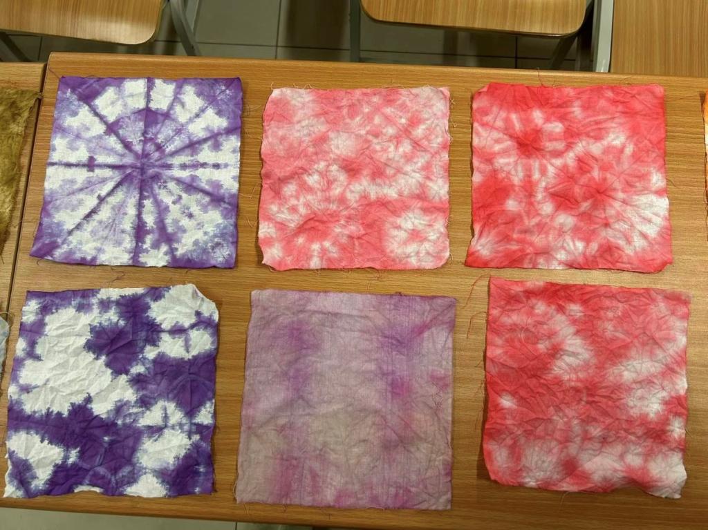 活动伊始,活动负责人首先向同学们深入浅出地介绍了扎染工艺的历史渊源、扎染的原理、技巧以及制作注意事项等知识,引发了同学们的浓厚兴趣。在负责人指导下,同学们充分发挥想象力和创造力,将布料运用的不同方式进行折叠、缠绕、卷曲,然后在染液的浸润下染色,创作出形态各异、色彩斑斓的扎染作品。制作完成后,同学们互相展示自己的作品,纷纷表示在活动中不仅对扎染工艺有了直观的认识,更对中国传统文化的深邃内涵和丰富价值有了更深的感悟。