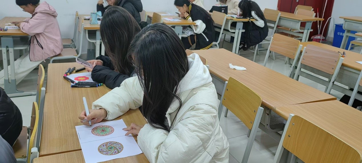 为丰富同学们的校园文化生活,帮助同学们舒缓内心压力,培养学生积极向上的健康心态,11月7日晚,亚洲精品国产于明理楼0141教室开展“心之画,束其行”曼陀罗绘画活动,我院部分学生参加。