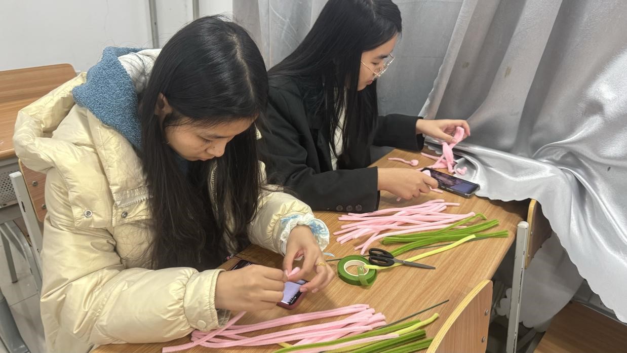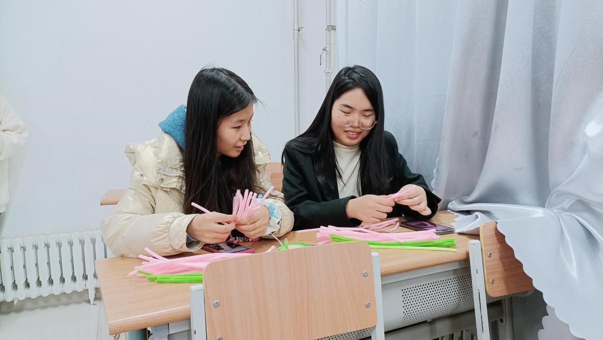 活动伊始,负责人准备了多彩的扭扭棒、剪刀等材料,并向参与活动的同学们详细介绍了扭扭棒的特点及其制作方法。在负责人的悉心指导下,同学们充分发挥想象力,将自己对美的理解融入创作当中,一扭一捏,一卷一折,一贴一合……从一开始的小心翼翼,到熟能生巧,整个现场弥漫着一种欢快而又专注的氛围,同学们相互讨论交流着各自的创意,每个人的脸上都洋溢着认真与期待。随着时间的流转,一根根普通的扭扭棒在大家的巧手下渐渐蜕变成了形态各异的花样手工作品,同学们纷纷进行现场展示并拍照留念。现场的每一件作品都凝聚了同学们的心血与智慧,它们不仅造型独特、色彩斑斓,更蕴含着同学们寄予的深刻寓意和丰富创意。