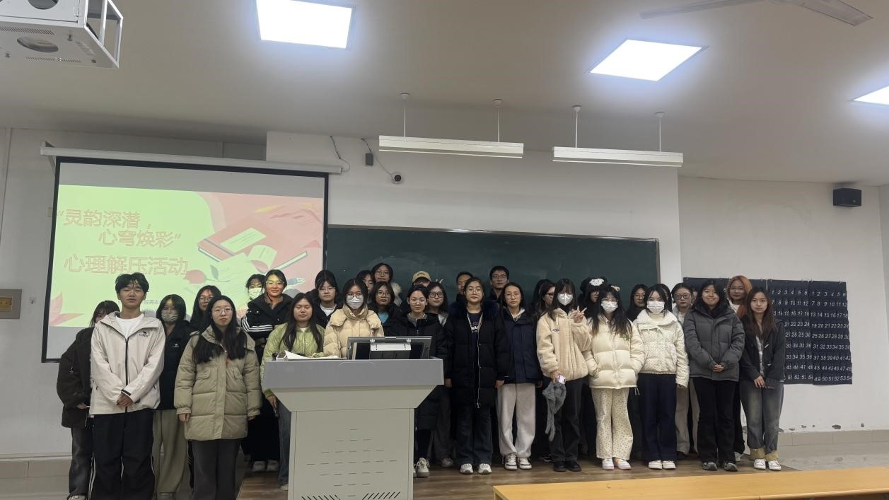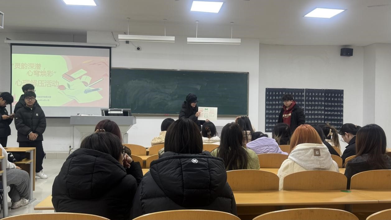 为进一步增强学生的抗压能力和自我心理调适能力,引导学生培养理性平和、积极向上的健康心态,12月11日,亚洲精品国产在明理楼0138教室开展了“灵韵深浅,心穹焕影”心理解压活动,我院40余名学生参加。