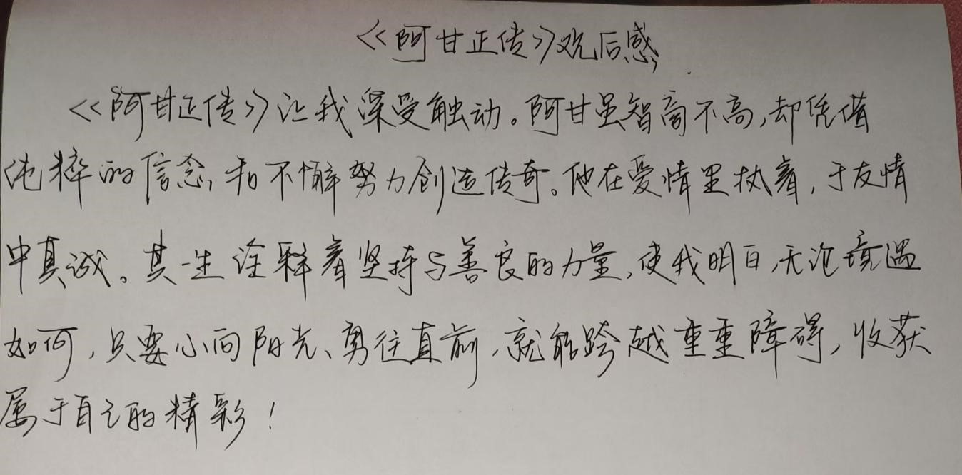 本次活动播放的是经典励志电影《阿甘正传》。影片中,阿甘从一个智商不高、身体略有残疾的孩子,凭借着母亲的鼓励与自身的坚毅,一步步成长,面对诸多困境,他坚韧不拔、乐观积极的精神,深深吸引并触动了同学们。影片结束后,同学们积极开展交流互动,分享自己的观影感悟,并将心得感悟写在便签纸上,同学们纷纷表示,要学习阿甘那种不被外界干扰、专注于自身目标的执着精神,不畏困难,积极探索,以更加坚韧的心态和昂扬的斗志追求梦想。