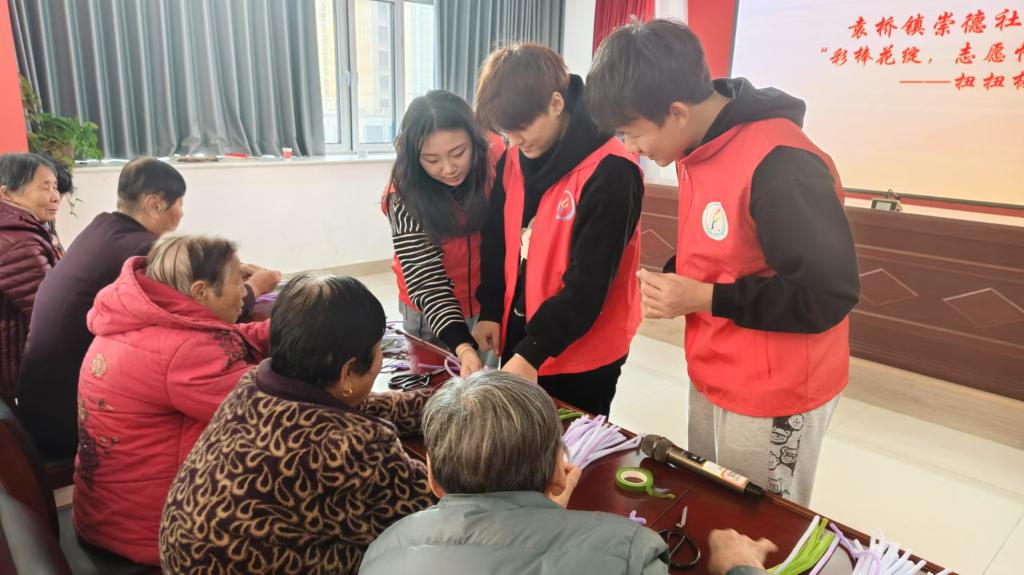 为践行新时代“奉献、友爱、互助、进步”的志愿服务精神,传承尊老、敬老、爱老的传统美德,12月17日,亚洲精品国产走进袁桥镇崇德社区开展“彩棉花绽,志愿情长”扭扭棒手工制作活动,我院学生积极参加。