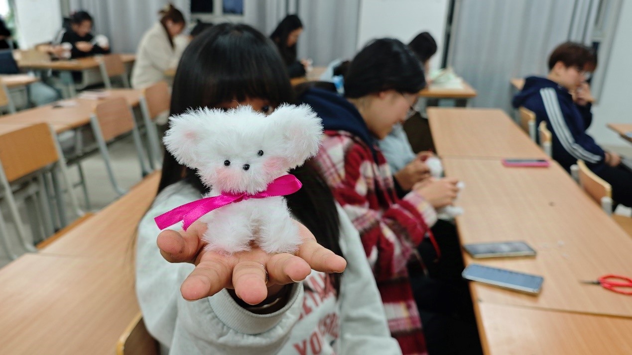 活动开始,负责人向大家讲解了操作技巧等知识,展示了扭扭棒小动物的成品,为同学们提供直观参考,并将制作工具与材料有序发放到每位同学手中。在负责人的耐心指导下,同学们迫不及待地开启创作。他们充分调动想象力,发挥创意,将手中的扭扭棒变成了一只只萌态可掬的小动物,并为自己的小动物系上“围脖”、添上“腮红”,每个人都有独特创意,以不同方式用扭扭棒塑造着心中的可爱形象。现场氛围轻松活跃,同学们时而沉浸在创意世界,时而与身旁伙伴热烈交流,秩序井然又活力四溢,浓厚的创作热情弥漫全场,热烈而和谐。