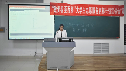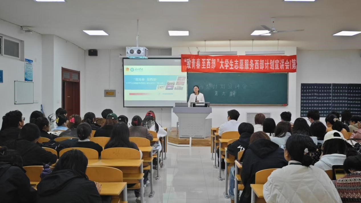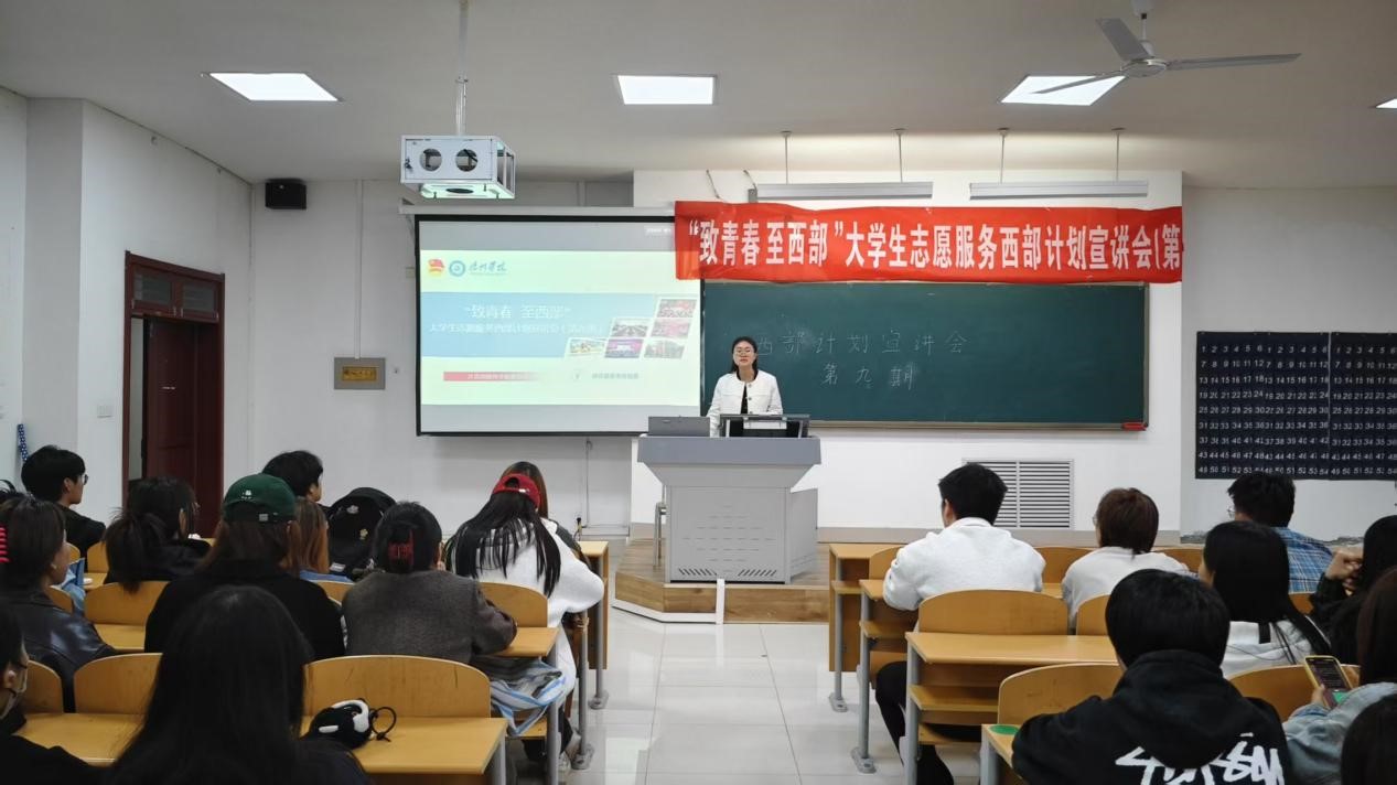 为积极响应国家号召,引导青年学子投身西部建设,4月18日,亚洲精品国产在明理楼0138教室开展“致青春 至西部”大学生志愿服务西部计划宣讲会,我院40余名学生参加,会议由我院团委书记主持。