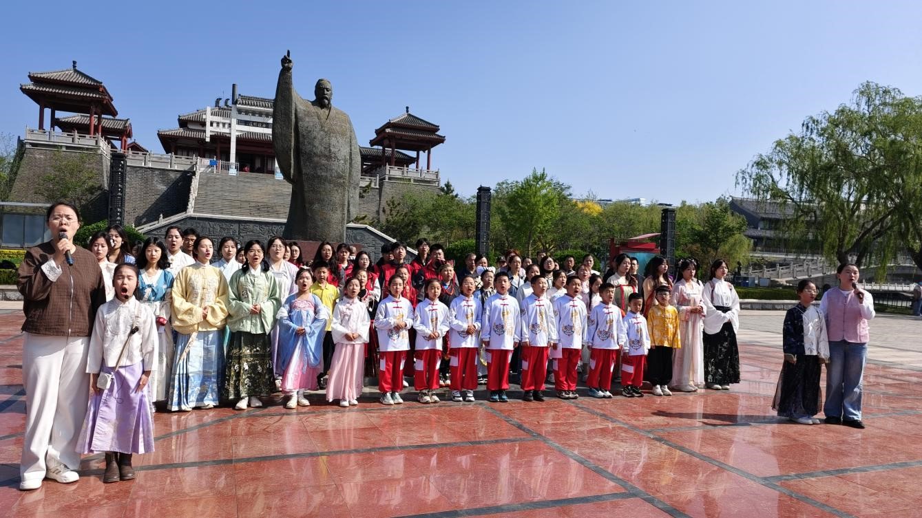 活动以汉服为媒、经典为引,通过沉浸式文化体验,引导青年学子与少年儿童在传统与现代的交融中坚定文化自信,赓续精神血脉。活动当日,我院学生志愿者身着典雅汉服,与康博小学的学生们并肩立于董子像前,齐声诵读《中国少年说》。朗朗诵声回荡于古街巷陌,既展现了少年意气与家国情怀,亦以庄重的仪式感诠释了传统文化薪火相传的深刻内涵。诵读结束后,同学们在文化街工作人员的引导下深入学习了董子思想,从“天人合一”的哲学智慧到“以礼化人”的教化理念,通过实物观摩与典故讲解,让同学们进一步领悟了儒学文化对中华民族精神世界的深远影响。