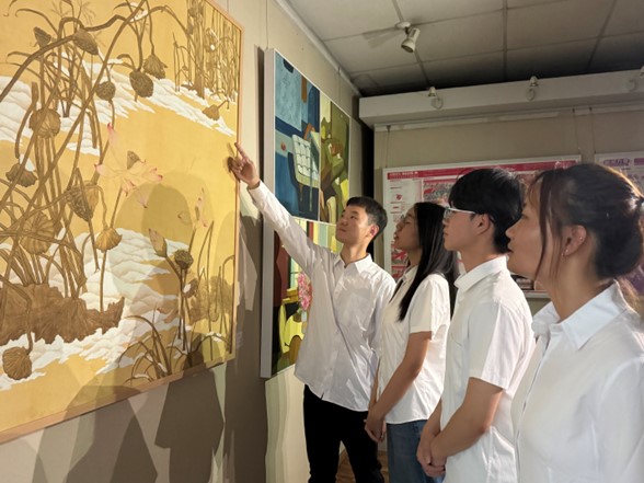 作品展涵盖中国画、油画、版画等多种类创作作品。以传统工艺、民俗风情等为灵感来源,运用现代艺术手法进行创新表达,生动诠释了中华民族共同体意识的深刻内涵,展现了德院青年学子扎实的专业功底和以艺术助力民族团结的责任担当。师生代表表示,通过深入了解作品的创作理念与内涵,对民族交融与文化传承有了更深刻的认识,加深了对文化传承的认知,感受到了中华优秀传统文化与民族团结进步的共生力量。此次活动激发了同学们的创新设计思维,在传统文化与现代创意的碰撞中,强化了师生铸牢中华民族共同体意识的自觉。