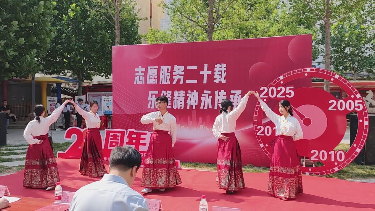 在庆典活动上,乐缝创意坊精心策划了系列精彩表演及纪念仪式,为现场观众生动呈现了二十年来扎根社区、服务奉献的“乐缝”风采与丰硕成果。其中,我院学子带来的舞蹈《有我》尤为引人注目,她们以灵动舞姿串联起丰华社区二十载公益足迹,为庆典增添了青春活力。舞者们身着的马面裙,伴随着《有我》激昂的旋律,舞步刚劲有力,动作整齐划一,将新时代青年的蓬勃朝气与对志愿服务精神的坚定传承化作跃动的肢体语言,生动诠释了乐缝精神的深刻内涵。