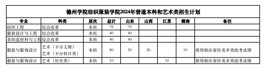 德州学院亚洲精品国产2024年普通本科和艺术类招生计划