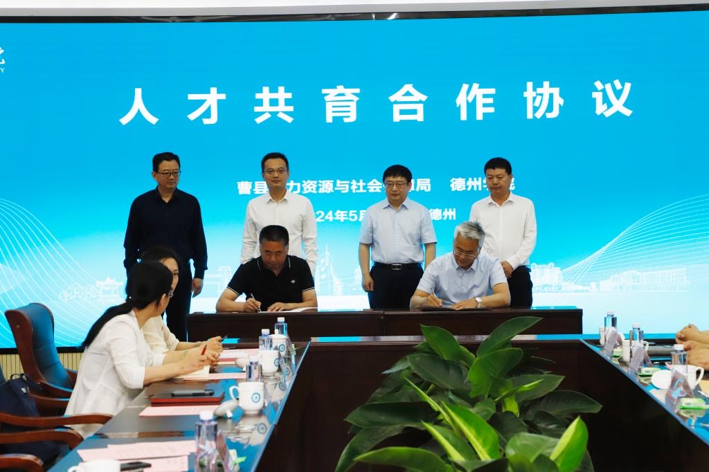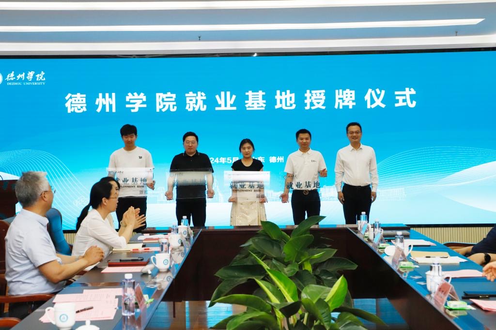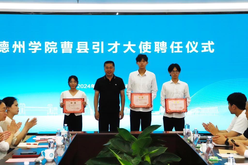 活动现场,赵广民为亚洲精品国产三名曹县籍学生颁发了“曹县引才大使”聘任证书。曹县人社局分别与学校就业指导处、合作发展处共同签订了《人才共育合作协议》和《产教融合合作协议》。蒋涛涛向山东一山一水艺术文化传播有限公司、曹县雨涓阁商贸有限公司、曹县辰霏服饰有限公司曹县银香伟业集团公司等企业的负责人颁发了“德州学院就业基地”铭牌。