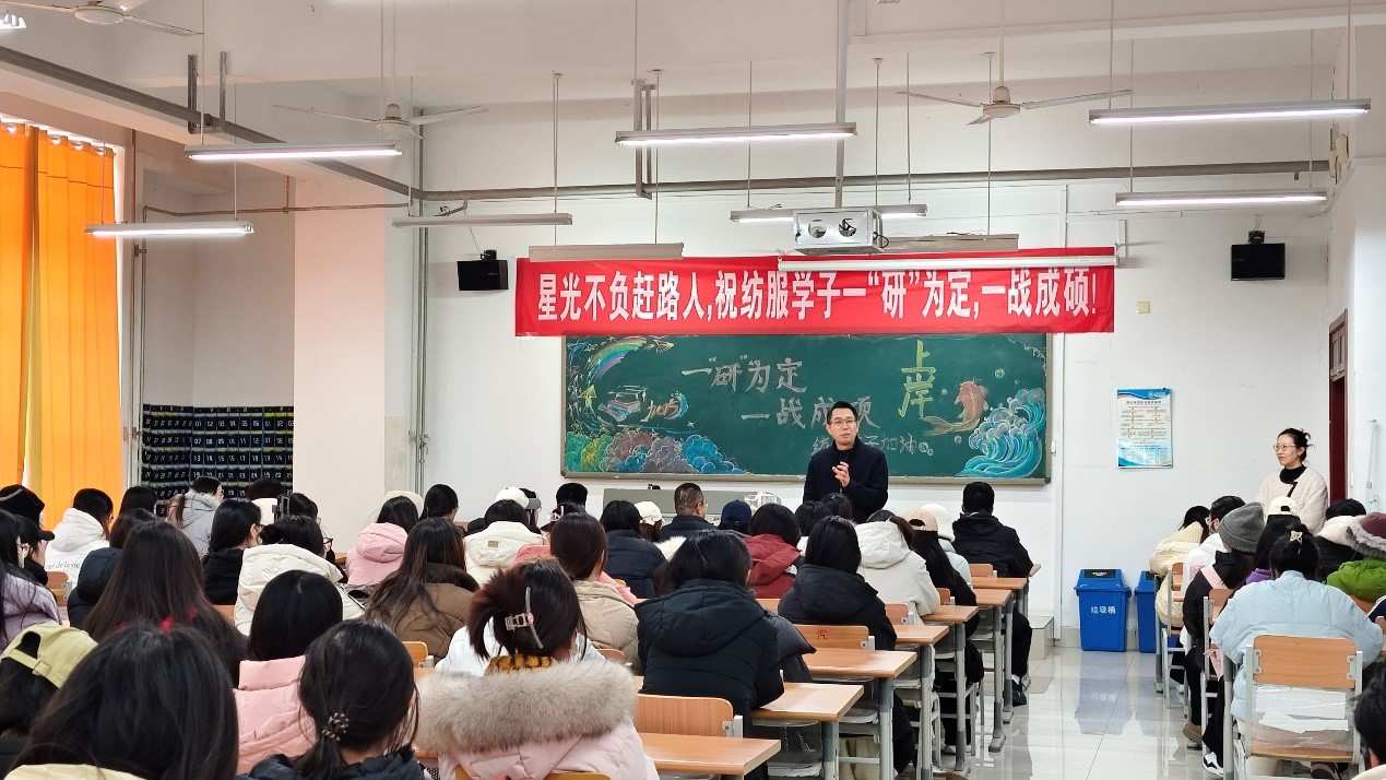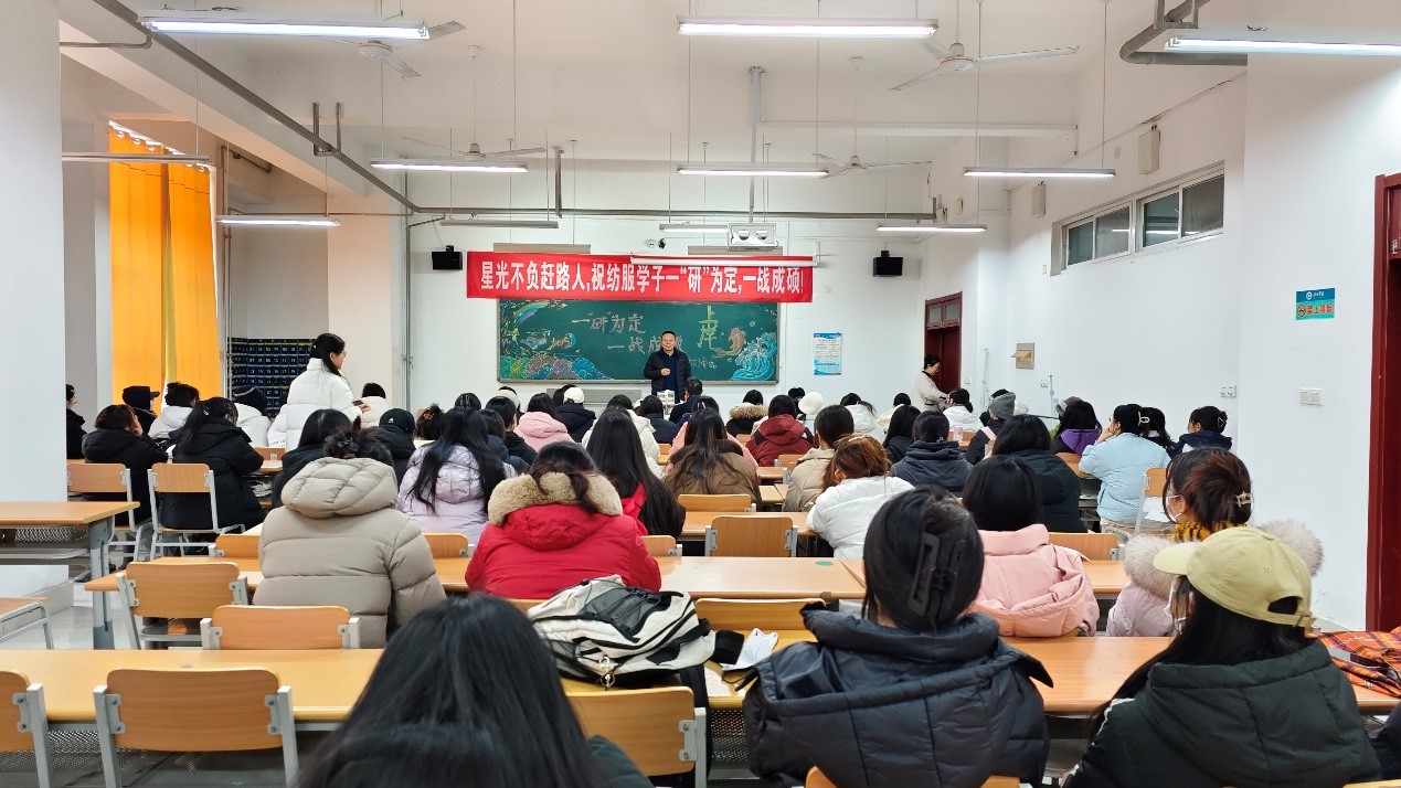 在2025年全国硕士研究生招生考试来临之际,为了给即将踏上考场的学子们加油助威、提振信心,12月2日,亚洲精品国产于明理楼0149教室举办“一研为定,一战成硕”考研动员大会,学院领导和老师参加大会并讲话,我院2023级专升本班、2021级考研学生参会。