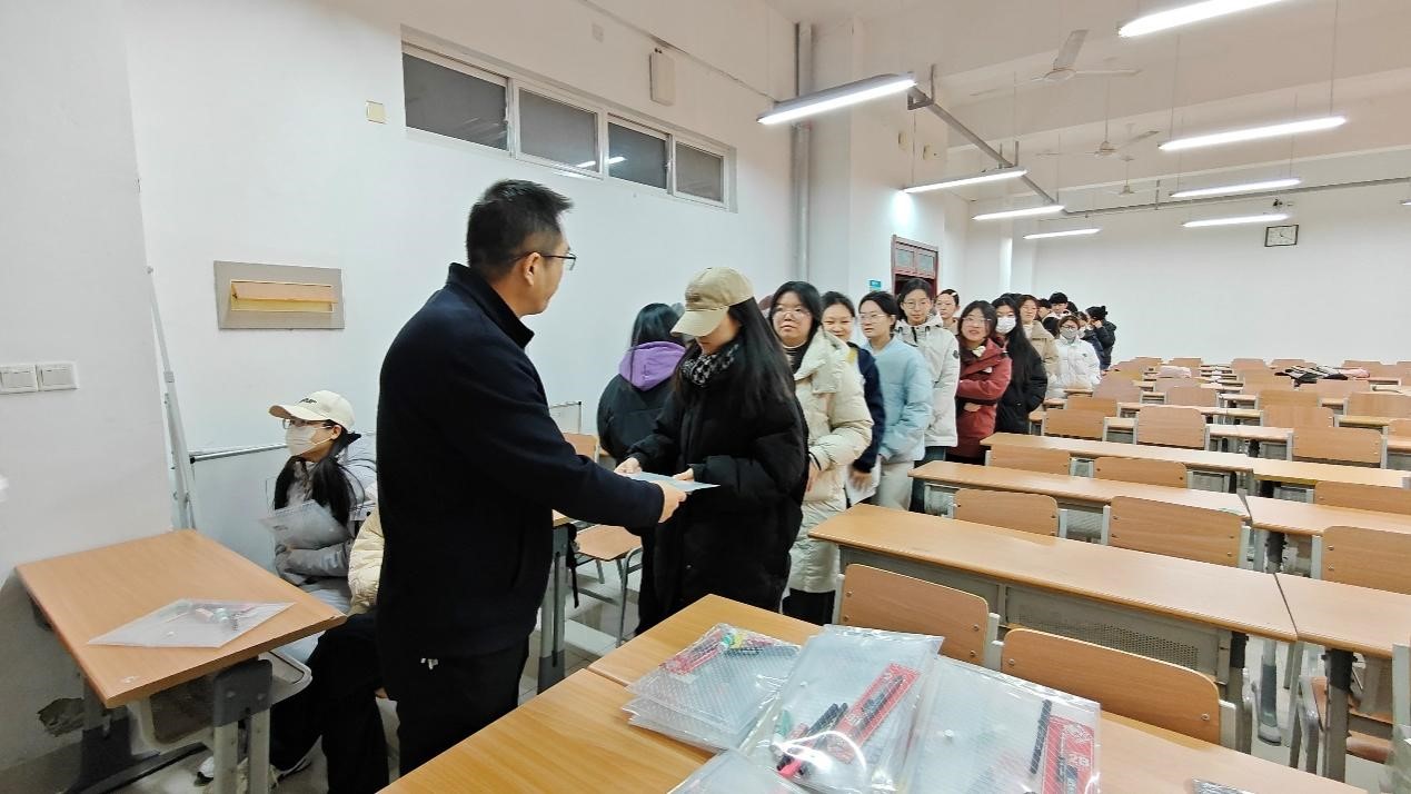会上,服装工程系主任进行考前动员,她凭借丰富的教学经验和对考研形势的精准把握,为同学们进行了详细的考前指导,从考试科目复习要点、考场应试技巧等方面进行了深入讲解,为同学们提供了宝贵的备考策略。我院院长发表讲话,他深入剖析了当前考研竞争的激烈态势以及考研对于个人成长和学院发展的重要意义。他指出,考研是同学们追求学术进步、提升自我竞争力的重要途径,也是展现学院教育教学成果的重要方式,院长鼓励同学们要坚定信念,保持积极心态,勇敢面对考研过程中的各种挑战。我院党委副书记在讲话中,着重强调了考前心态调整的重要性,他以亲切的话语叮嘱同学们要学会放松身心,避免过度焦虑,以最佳的精神面貌迎接考试。宣誓环节,全体考研学子紧握右拳,以铿锵有力的声音庄严宣誓,展现出考研上岸的坚定决心和必胜信心。此外,学院精心准备了考试文具用品,由学院负责人分发给考研学子。同时,在温馨的互动环节,学院为每位考研学子送上了特别的礼物——带有考研学子名字的小蛋糕,这份甜蜜的礼物不仅是对同学们辛苦备考的认可和鼓励,更象征着学院对他们的美好祝福,希望考研学子能以笔为戈,披荆斩棘,收获甜美果实。