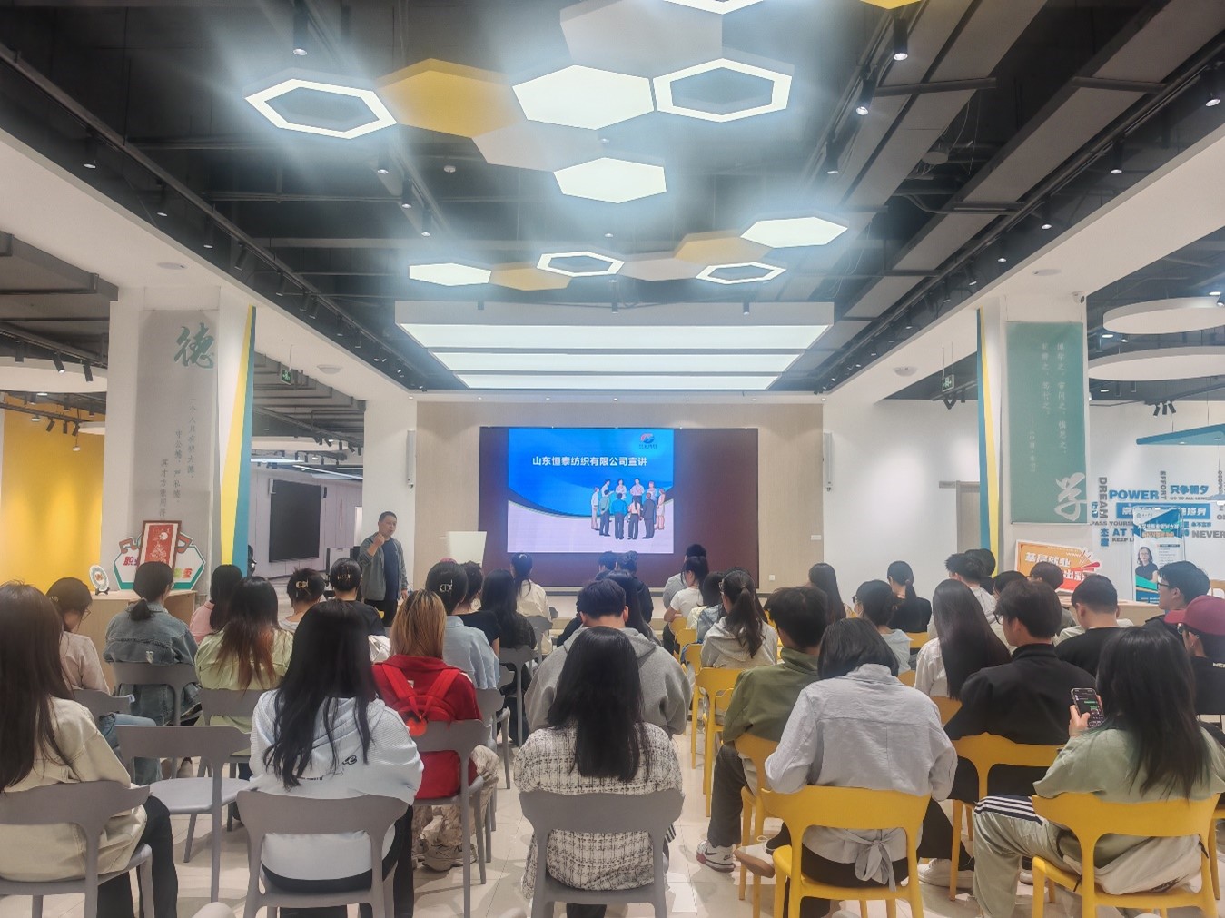 为进一步深化校企合作,助力毕业生高质量就业,4月23日,我院邀请山东恒泰纺织有限公司在大学生就业创业赋能中心开展招聘宣讲会,我院2025届毕业生参加。